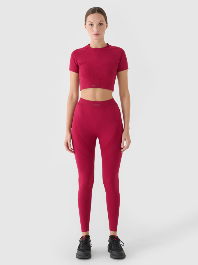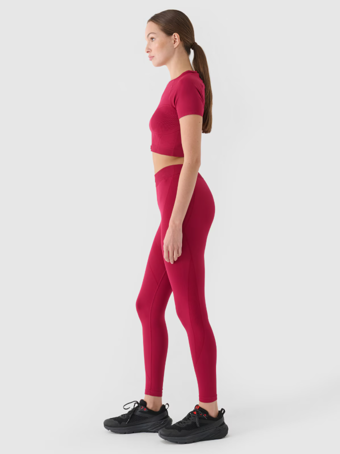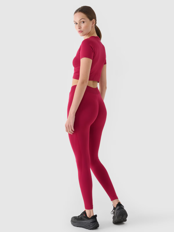 Legginsy treningowe 4F z wysokim stanem damskie - czerwone