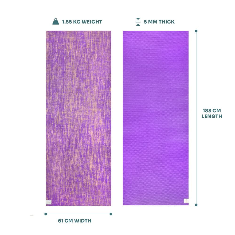 Fioletowy odcień maty symbolizuje intuicję, spokój i duchową głębię, wprowadzając harmonię i uważność do codziennej praktyki.