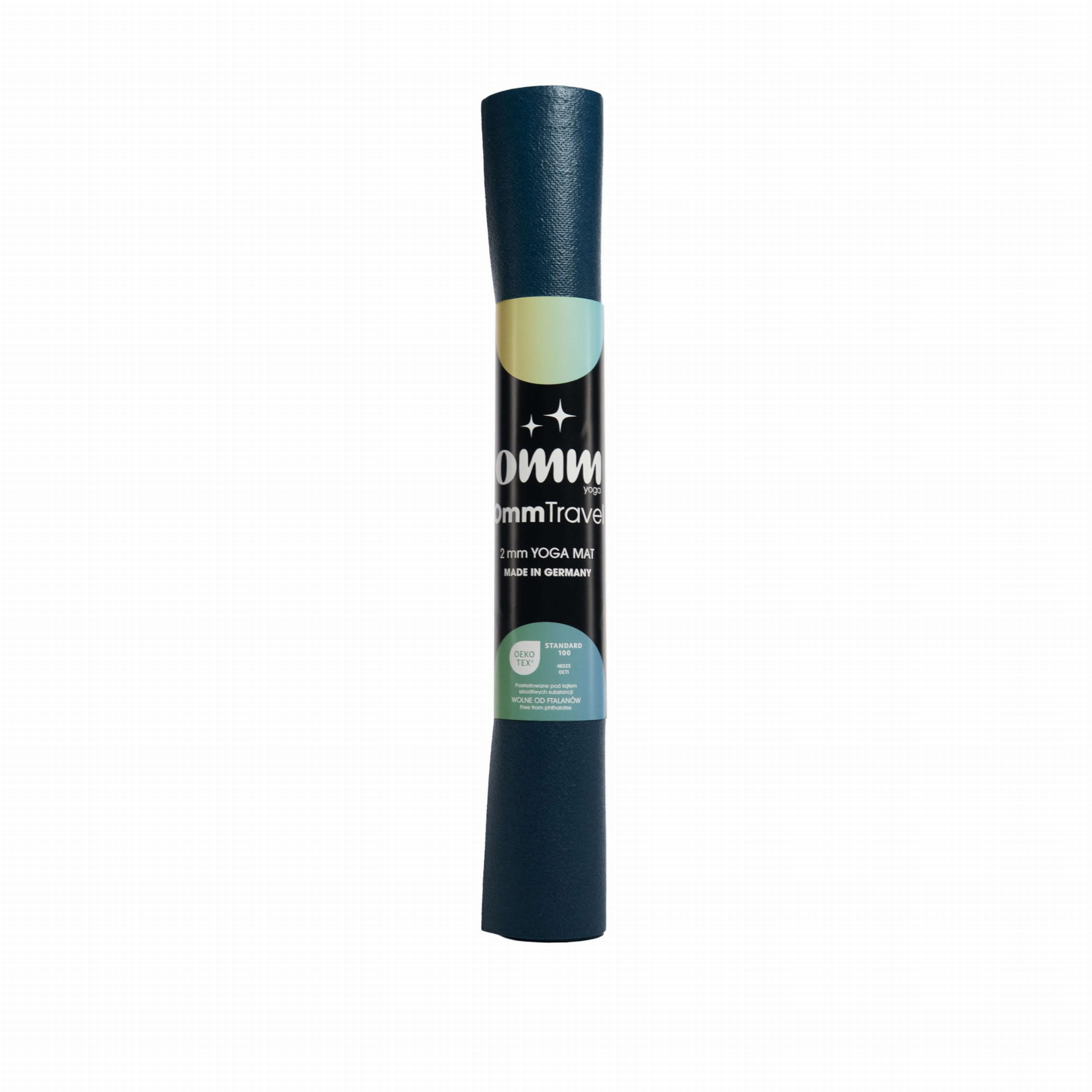 Model OmmYoga Travel 2 mm – Navy Blue, wyprodukowany w Niemczech, łączy funkcjonalność, trwałość i elegancki design, oferując komfort praktyki niezależnie od miejsca.