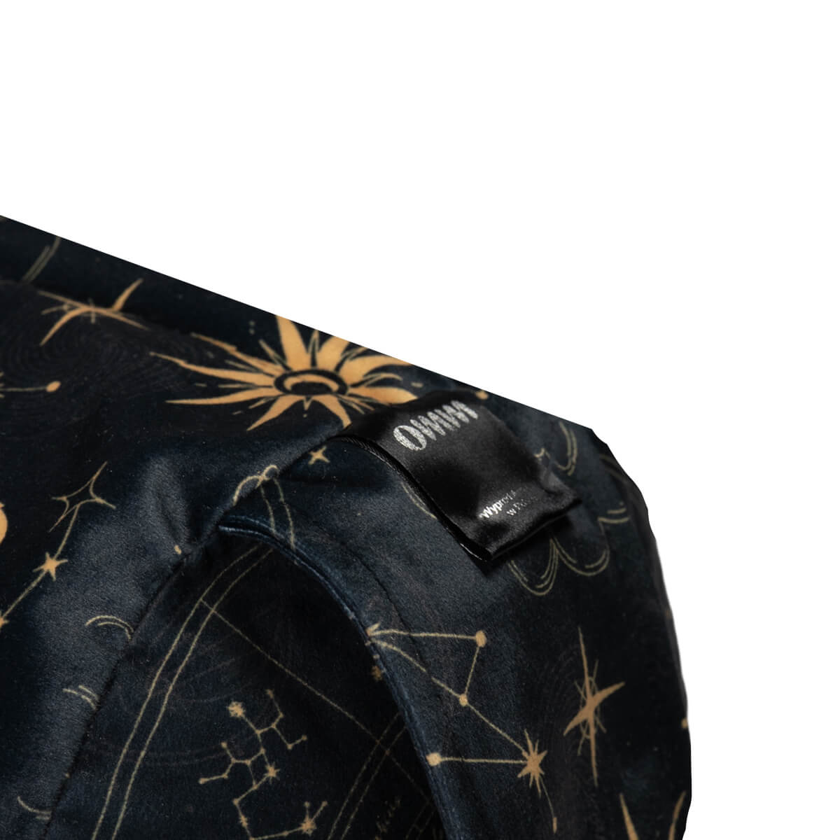 Bolster Omm Yoga – Zodiac Passion to wyjątkowy wałek do jogi z oryginalnym wzorem astrologicznym — motywem konstelacji i znaków zodiaku, który nadaje mu mistycznego i inspirującego charakteru. Wypełniony naturalną łuską gryki, wałek zapewnia ergonomiczne podparcie, dopasowując się do kształtu ciała i równomiernie rozkładając nacisk.